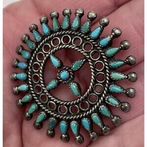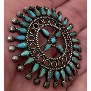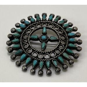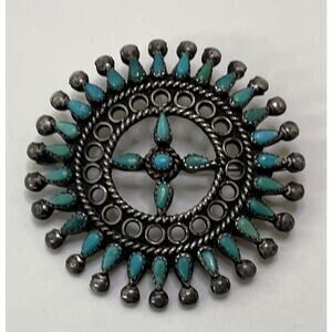 Vintage Zuni Petit Point Silver & Turquoise Brooch Pin Native American Old Pawn