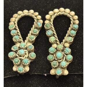 Vintage Zuni Sterling Petit Point Turquoise Flower/Hoop Screw Back Earrings
