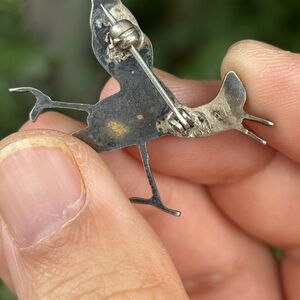 Vintage Zuni signed Sterling Silver Bird Brooch Inlay Turquoise Coral Shell 1.5”