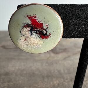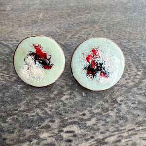 Vintage abstract pale green artistic screw back circular medallion earrings