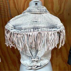 Vintage acid Wash denim vest w/ fringe cropped 80s women’s
