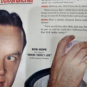 Vintage magazine print ad for GE Lamp light bulbs with actor Bob Hope, Where there's life. 1947 ad. Approximately 14x11 inches. Nice condition.