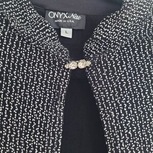 Vintage all over sparkle black cardigan open front faux diamond closure