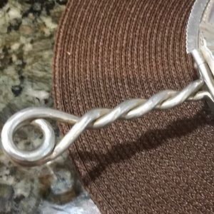 Vintage lovely Silent Butler hand wrought aluminum by Cromwell. The top part is gorgeous with flowers and fruit. The inside has some wear as does the bottom. It is still a lovely piece. Please see the pictures. The handle is twisted aluminum. Would look pretty hanging in a farmhouse kitchen.