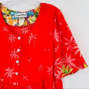 Vintage amara Hawaiian mumu maxi dress flamingo tropical novelty print