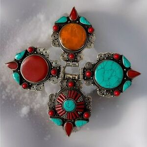 Vintage and stunning handmade Tibetan silver pendant inlaid with Turquoise&Coral