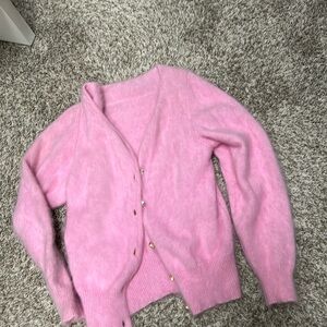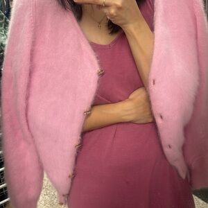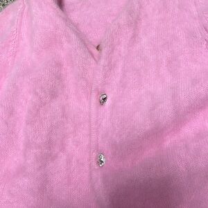 Soft pink angora cardigan with diamond button detailing. Bought from a high end vintage store.