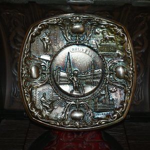 Vintage antique 3D ART WALL HANGING PLATE Brussels and its monuments