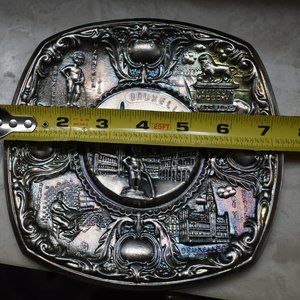Vintage 3D PATINA PEWTER SILVER PLATED mural depicting Brussels and its monuments 3d ART INCLUDES: MANNEKEN PIS STATUE BRUSSELS PEEING BOY, 3D WATERLOO LION STATUE , HOTEL DEVILLE , BRUGGE