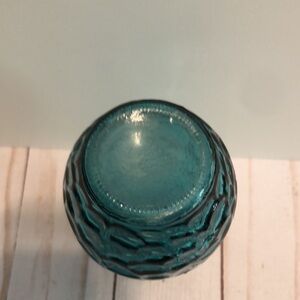 Vintage aquamarine bud vase pebbled press glass retro stunning 5-1/2” tall