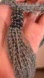 Lovely dove grey thread crocheted into a long art deco necklace perfect for any flapper. Tiny matte grey quarts twinkle as they are woven into each thin crochet chain with an oil slick aurora borealis finish on a middle decoration. Easy to wear style with an adjustable lobster claw clasp or slip it over your head and have it hang down in a long lariat style.