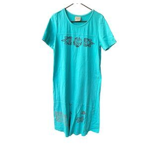 Vintage art to wear Blue Cactus size m 100% cotton maxi dress. Button on bottom 1/4 of dress. Approximately 48” in length. I folded dress in half and measured. See pic