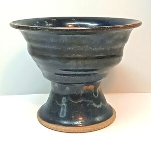 Vintage artisan blue glazed pedestal bowl. No flaws