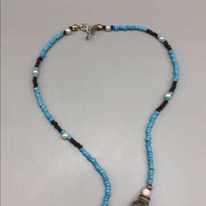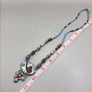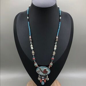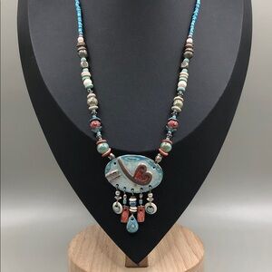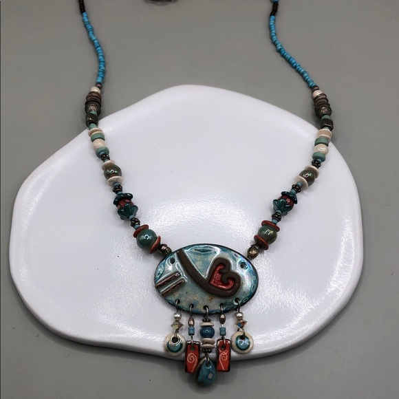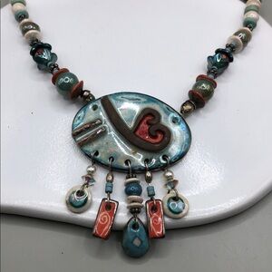 Vintage artisan handmade ceramic heart beaded necklace romantic whimsy boho.