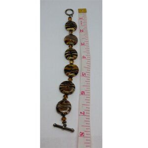 Artisan vintage toffee swirls art glass bracelet toggle clasp.