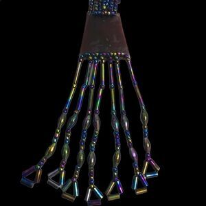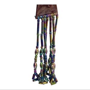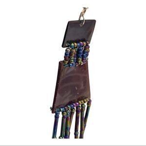 Fantastic pair of hand made faux tortoise shell and peacock glass beaded earrings pierced. These are smart snd subtly beautiful. They are ver long and glamorous, 4.5” in length, approximately 1” wide, Shepard’s hook for pierced ears. Please see all photos for full description.