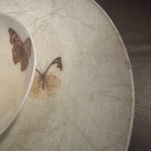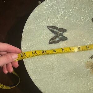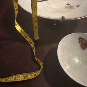 Vintage mcm fiber glass butterfly platter and bowl with a unique atomic like stand, that reminds me of a ufo!. No significant flaws, some rough spots around edges. Last pic isn’t mine, but what popped up on google, demonstrating an alternative way to use this set! So fun!