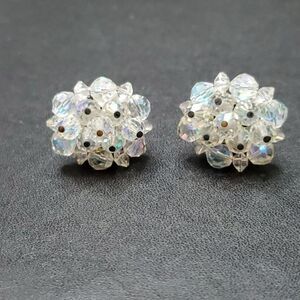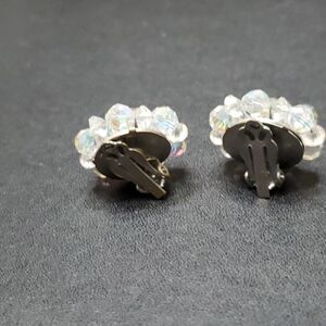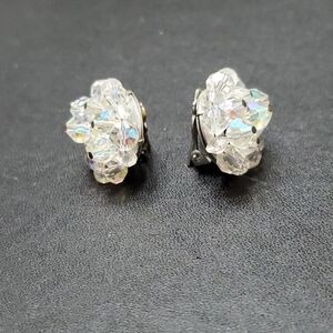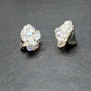 Gorgeous silver colored clip on earrings are made with aurora borealis beads.