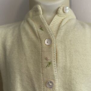 Vintage baby girl yellow cardigan sweater with embroidered flowers & matching knit booties