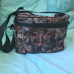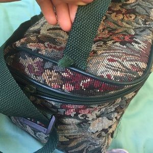 Cute Vintage bag. Beyond adorable. Could use for makeup storage or a lunch bag! Only flaw is handle strap is starting to come off (as pictured) but it's still really really sturdy. Always open to offers! #Vintage #Bag #Makeup