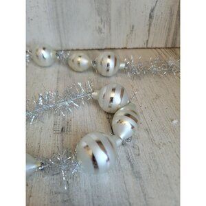 Vintage ball blown glass Garland silver stripe Xmas home decor