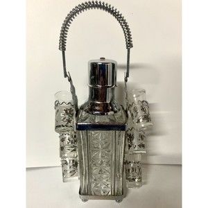 Vintage barware United Metal Goods 12” Glass Liquor Decanter Pump with Glasses