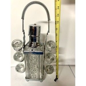 Vintage barware United Metal Goods 12 Glass Liquor Decanter Pump with Glasses