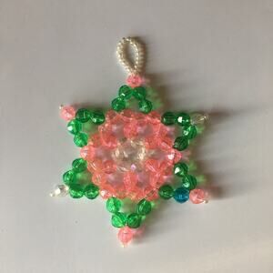Vintage beaded Christmas star - handmade Christmas ornament, green and pink