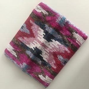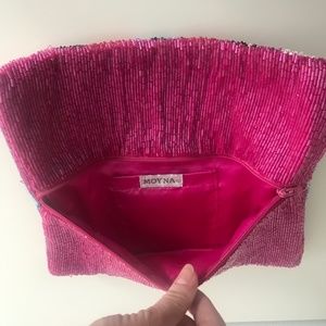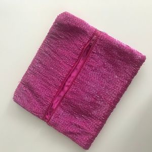 HOT PINK and multicolored beaded clutch. Great way to add pops of color to LBDs or black-tie gowns! Single zipper pocket with beaded flap closure. VERY GOOD used condition, some loose threads/beads but does NOT affect beauty.