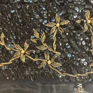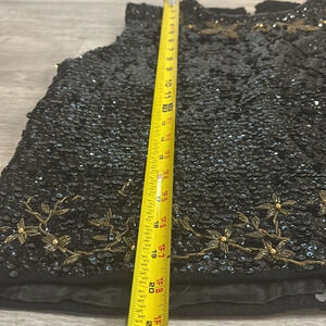 Vintage beaded crop top in excellent condition. This stunning black top is adorned with intricate gold and green floral and butterfly beadwork. Perfect for parties, special events, or adding a touch of vintage glamour to any outfit. Back zipper closure. A unique statement piece!