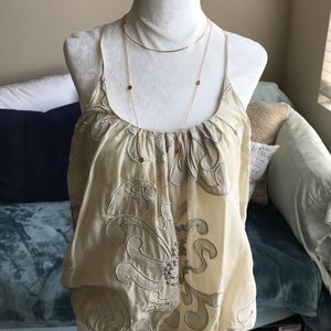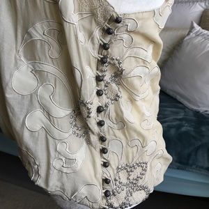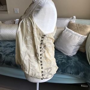 Cotton top with beaded details. Loose fit. Straps are adjustable. Cute vintage buttons on the side for a more elegant look. No stains and no damages. Fit size 0-2