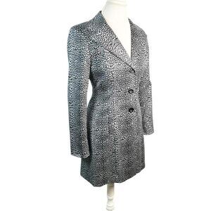 Vintage bebe Silver Metallic Leopard Animal Print Coat Lined Pockets USA Size 10
