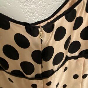 Super flattering pink dress with black bowtie straps. Silky fabric.
