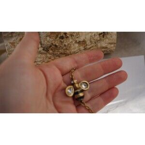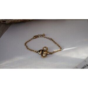 Add playful vintage charm to your look with this gold-tone bracelet featuring a bold bee charm centerpiece. The insect is beautifully detailed with black enamel stripes and clear rhinestone accents on the wings and head, catching the light with every move. A delicate cable chain and lobster clasp with extender make it easy to adjust the fit. Likely from the 1990s or early 2000s, this piece embraces whimsical Y2K style with a nature-inspired twist. In good vintage condition with light wear. A standout for bug lovers, cottagecore fans, or collectors of quirky costume jewelry.