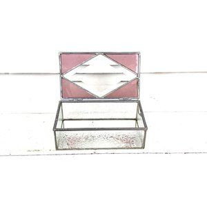 Vintage beveled diamond mirror glass trinket jewelry ring box
