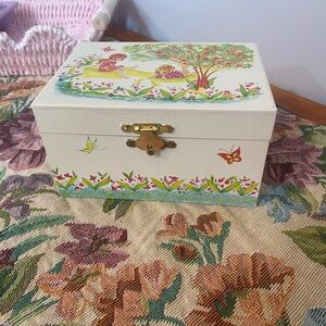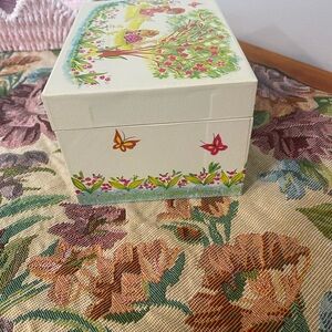 Vintage big eyed girl ballerina Jewelry Box with flowers & butterflies