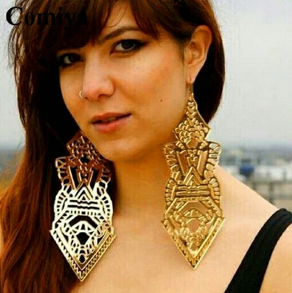 Punk vintage hollow out statement brincos big long gold drop Earrings for women