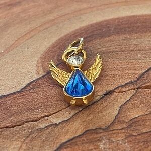 New birthstone September Gold tone Angel charm with a blue stone and CZ