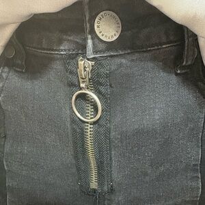 Vintage, edgy, funky black paneled ankle jeans with distressed hem. These are so comfortable and fun! They have a decent amount of stretch. I hate to part with these but I no longer fit in them.