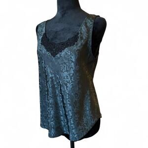 vintage top, jacquard tank, black cami, gothic top, elegant blouse, lace detail, sleeveless, 90s fashion, evening wear, witchy style, alt fashion, dark feminine, vintage-inspired, baroque pattern, satin look
