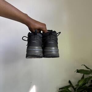 black hiking boots, waterproof, rugged outsole, ankle support, outdoor footwear, durable, trekking boots, hiking gear, silhouette, trail-ready
