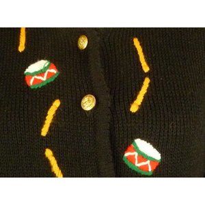 Vintage black knit Christmas holiday cardigan sweater ugly Christmas sweater