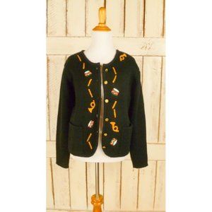 Vintage black knit Christmas holiday cardigan sweater