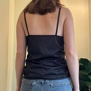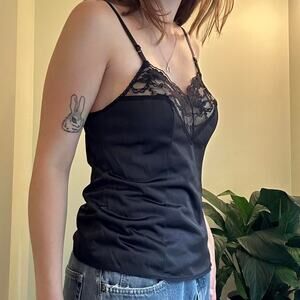black lace camisole, slip top, adjustable straps, vintage lingerie, 90s style, grunge fashion, delicate lace, nightwear, feminine top, minimalist