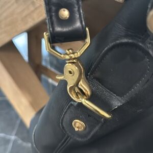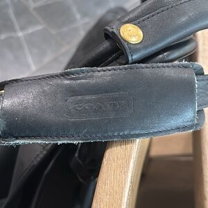 Vintage black leather coach large duffle/Trekker Bag. 26” wide x 16” high x 10”