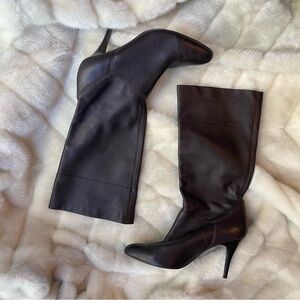 Vintage black leather heeled boots wide calf size 10
