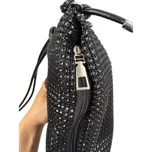 Vintage black mesh sequins disco bag with adjustable leather strap