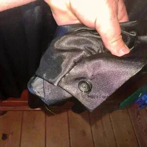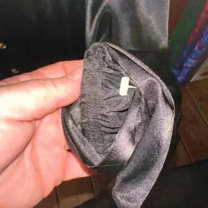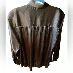 Vintage black satin long sleeve blouse size 20 W by Joanna USA.Gold knot buttons