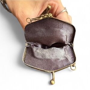 Beautiful design, small bag with small chain. Like a change purse/ wallet. About 4.5” long.
