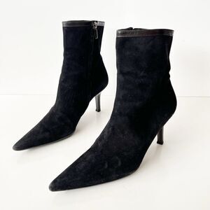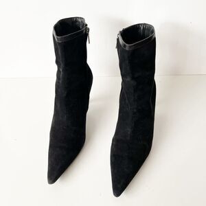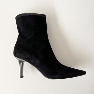 Vintage black suede pointed toe heeled ankle boots witchy goth punk size 41 / 9